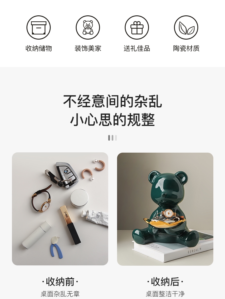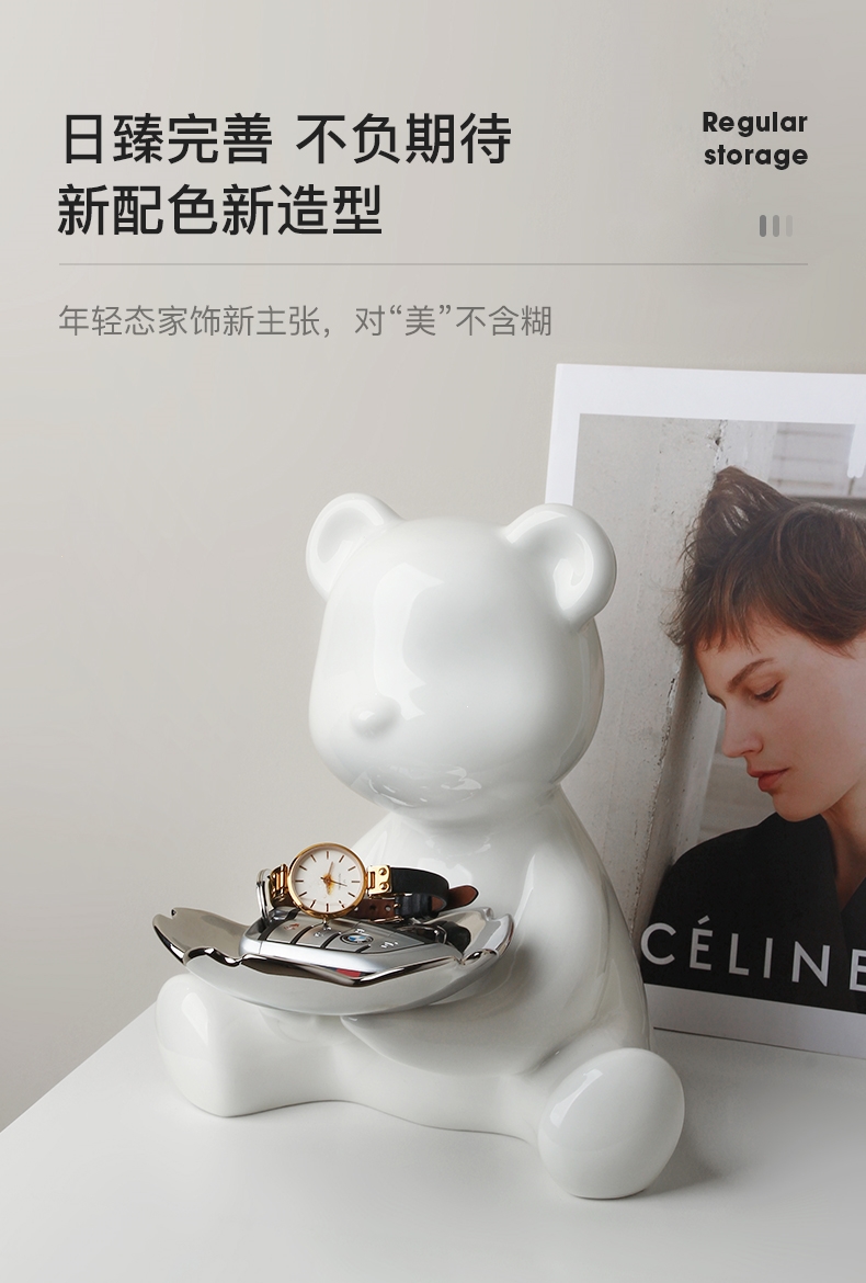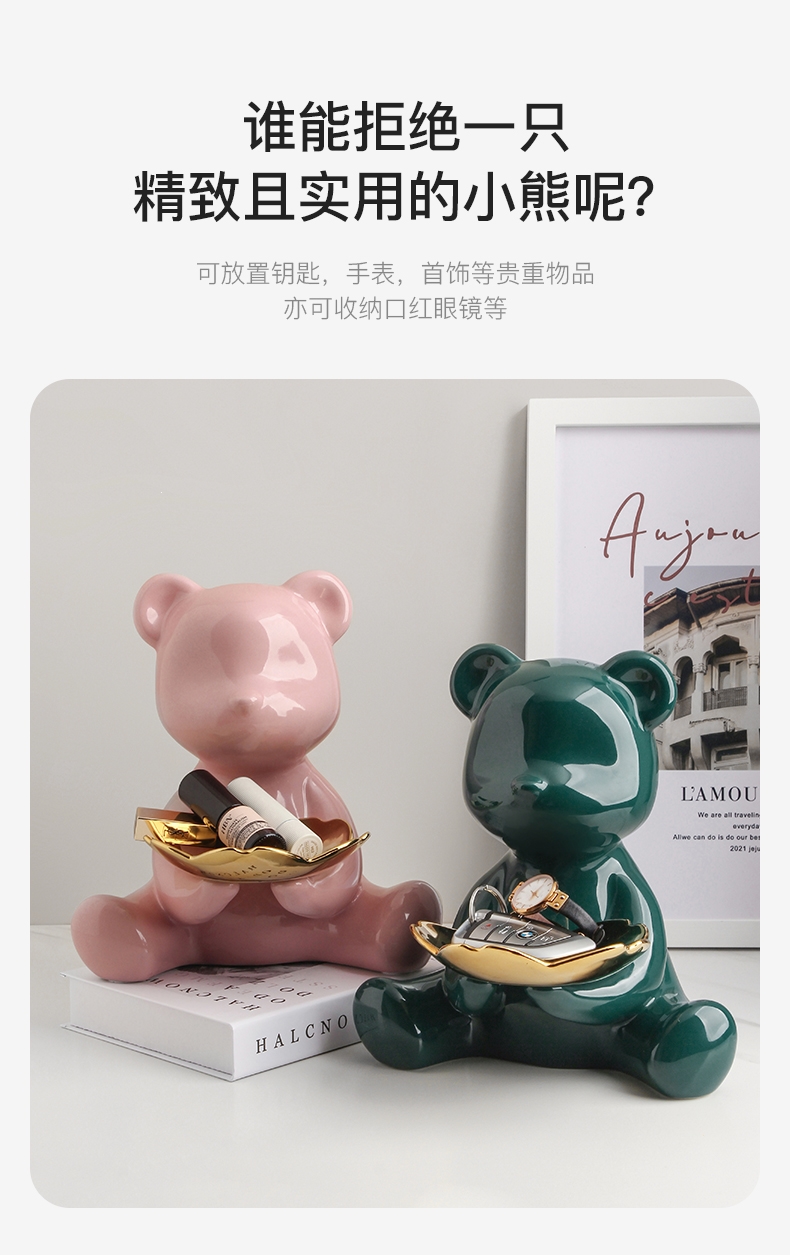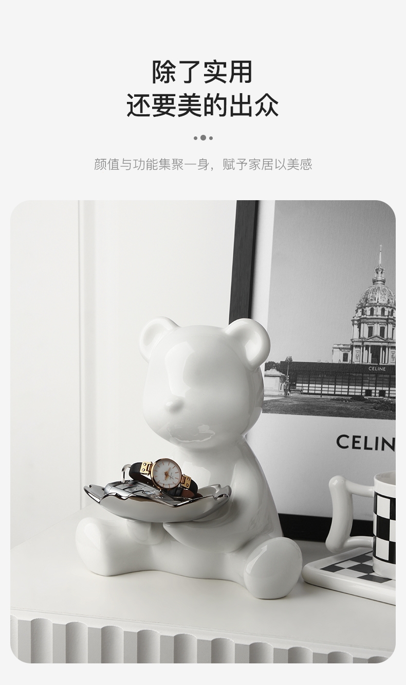 阿斯卡利轻奢托盘创意玄关钥匙收纳摆件客厅家居装饰品摆设礼物 小熊收纳白色
