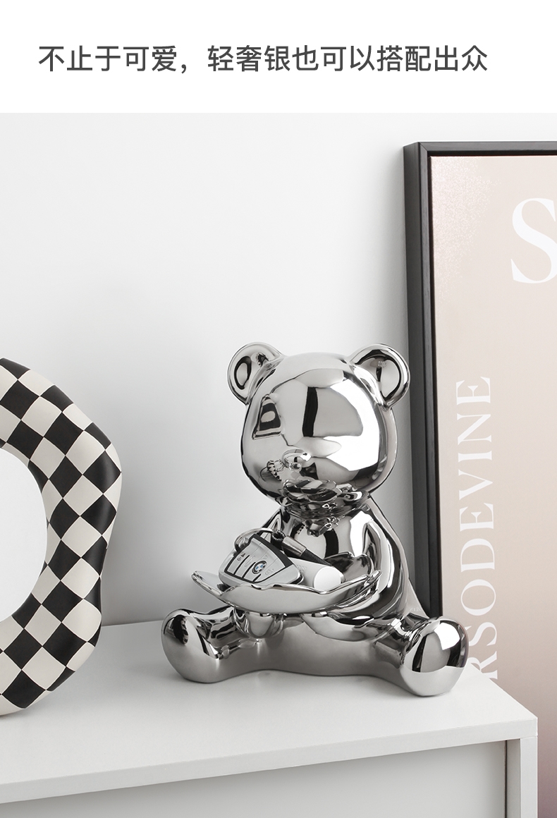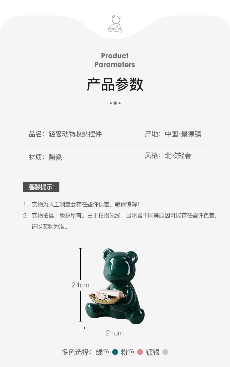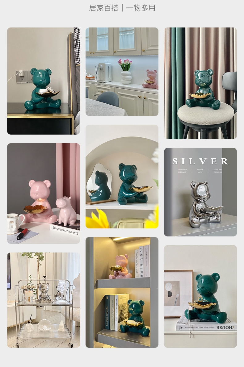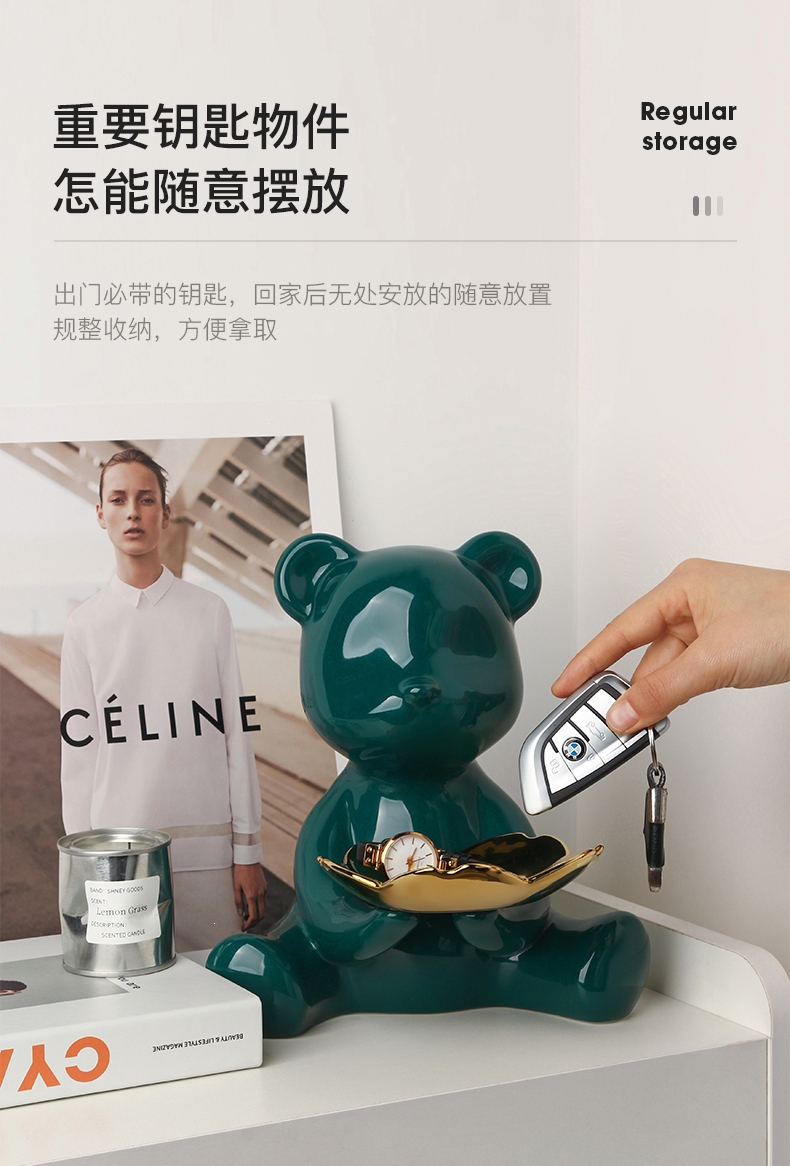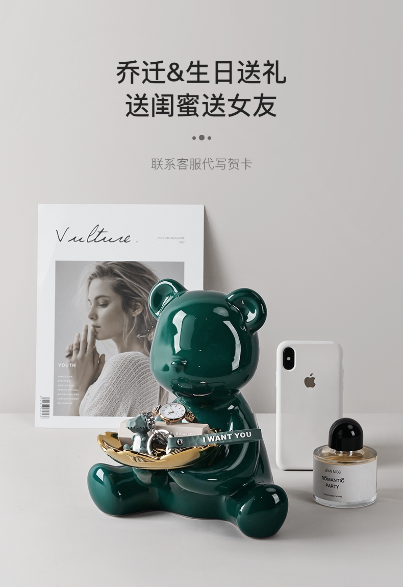 阿斯卡利轻奢托盘创意玄关钥匙收纳摆件客厅家居装饰品摆设礼物 小熊收纳白色