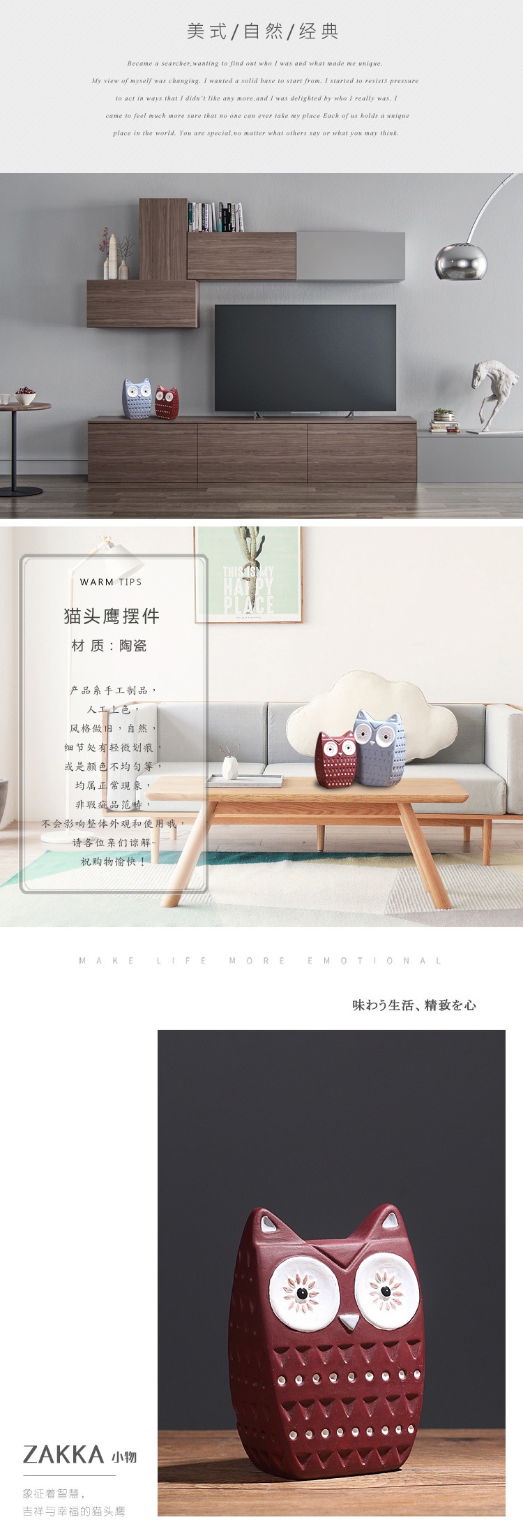 现代简约陶瓷工艺品猫头鹰摆件 美式家居装饰品客厅电视柜装饰品