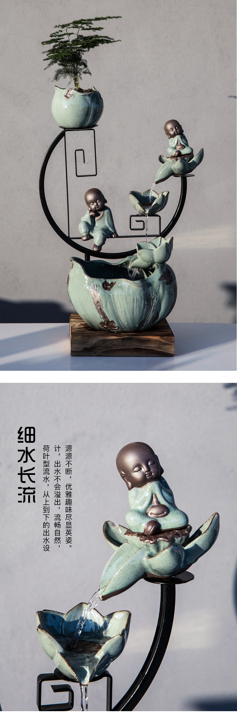中式禅意陶瓷绿植轮客厅办公室家居工艺摆件开业礼品