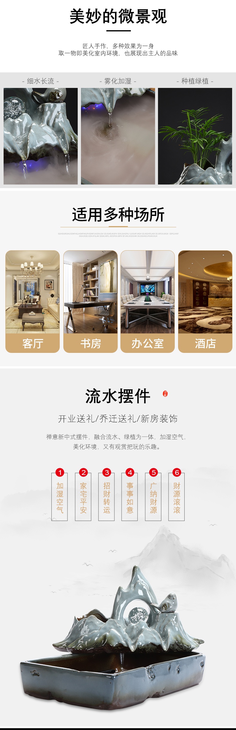 新中式陶瓷流水加湿器玄关客厅家居工艺摆件乔迁开业礼品