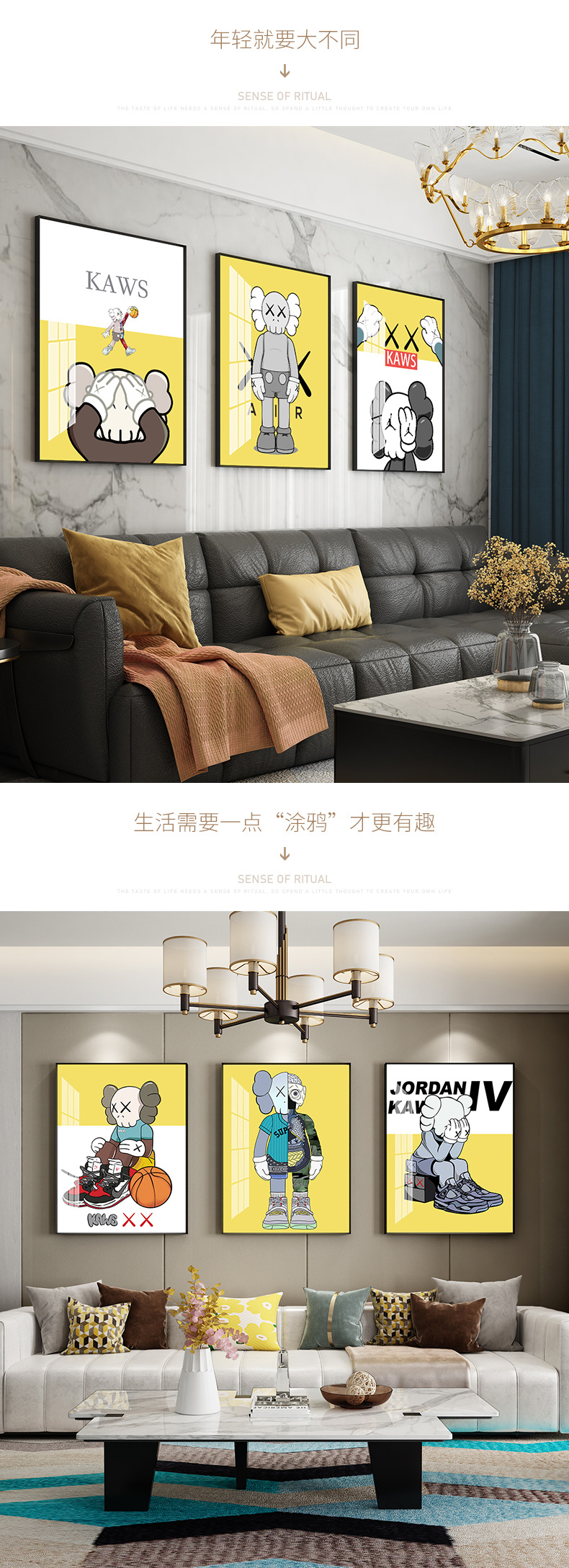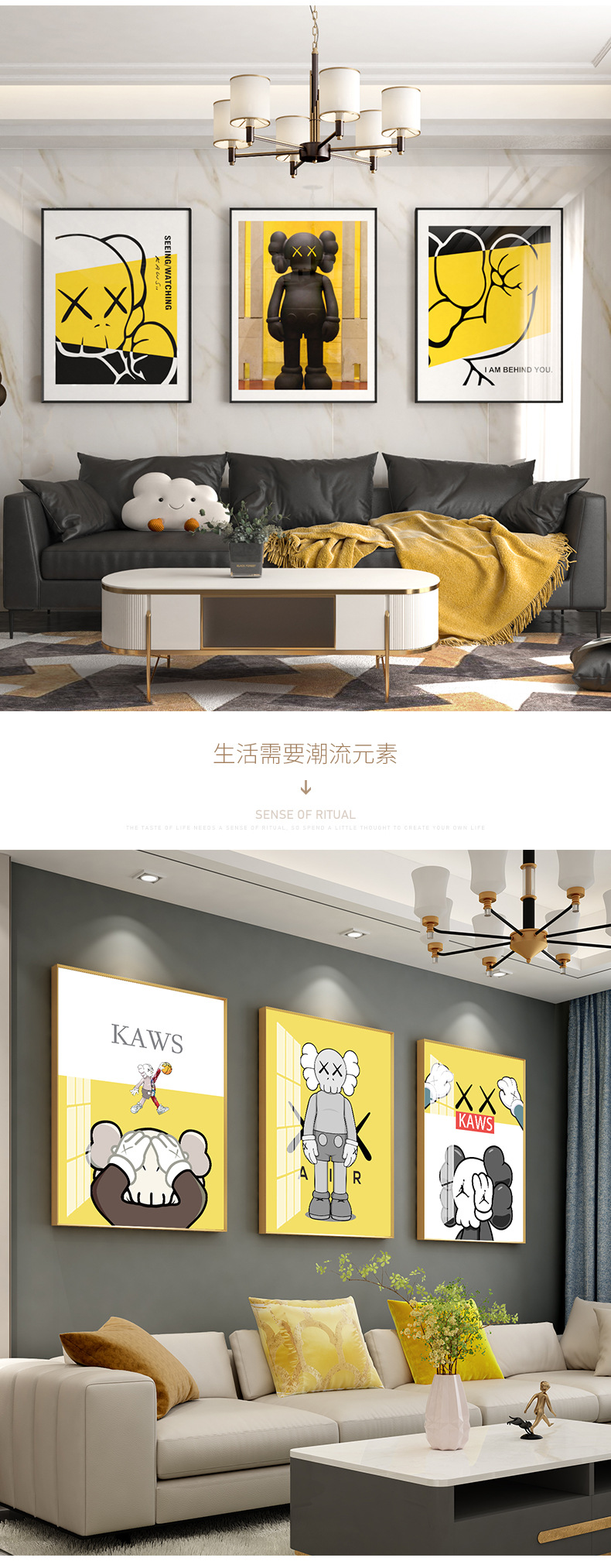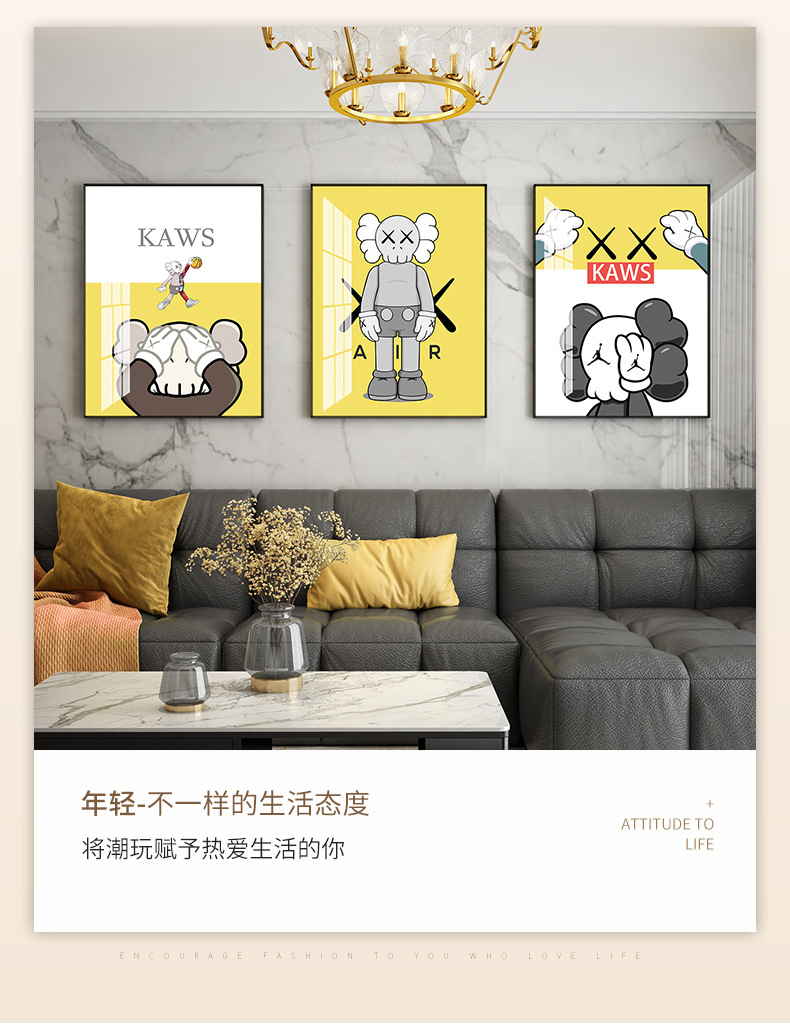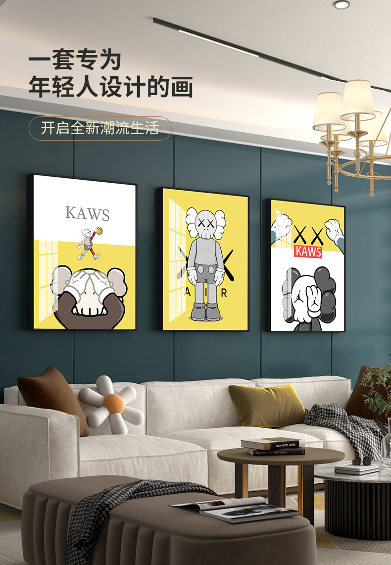 厅沙发背景墙挂画2021新款潮流装饰画北欧风大气三联画壁画